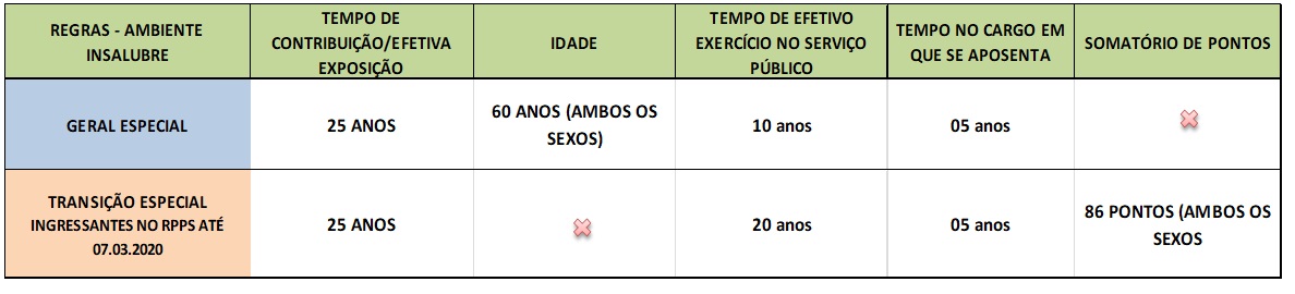2 . A Regra Especial (Ambiente Insalubre) prevista no artigo 5º da LC nº 1.354/2020, estabelece que ao servidor cujas atividades sejam exercidas com efetiva exposição a agentes nocivos químicos, físicos e biológicos prejudiciais à saúde, ou a associação destes agentes, vedada a caracterização por categoria, poderá aposentar-se, desde que cumpridos cumulativamente os seguintes requisitos: