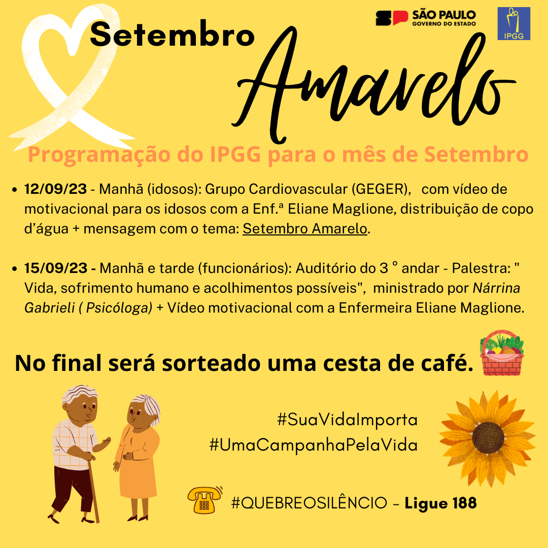 Neste mês de setembro, diversas unidades da Secretaria de Estado da Saúde de São Paulo estão realizando ações em atenção à Campanha Setembro Amarelo, que promove a conscientização a respeito da prevenção ao suicídio.