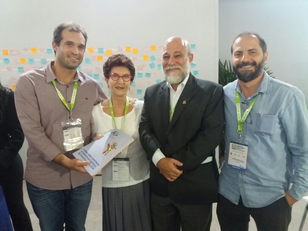Bruno Quiqueto, assessor de Imprensa do COSEMS e editor convidado do BIS, Luiza Heimann, diretora do Instituto de Saúde, Stênio Miranda, presidente do COSEMS e Márcio Derbli, editor do BIS.