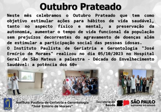 Neste mês celebramos o Outubro Prateado que é o momento de honrar e reconhecer a sabedoria e as contribuições da terceira idade, com a criação do Estatuto da Pessoa Idosa, a Lei 10.741, promulgada em 1º de outubro de 2003, que dispõe sobre o Estatuto da Pessoa Idosa que assegura os principais direitos do idoso, além de deveres da sociedade, da família e do Poder Público e a Lei nº 11.433/2006 que instituiu o Dia Nacional da Pessoa Idosa, determinando que os órgãos públicos responsáveis pela coordenação e implementação da Política Nacional da Pessoa Idosa fiquem incumbidos de promover a realização e a divulgação de eventos que valorizem a pessoa idosa na sociedade.
